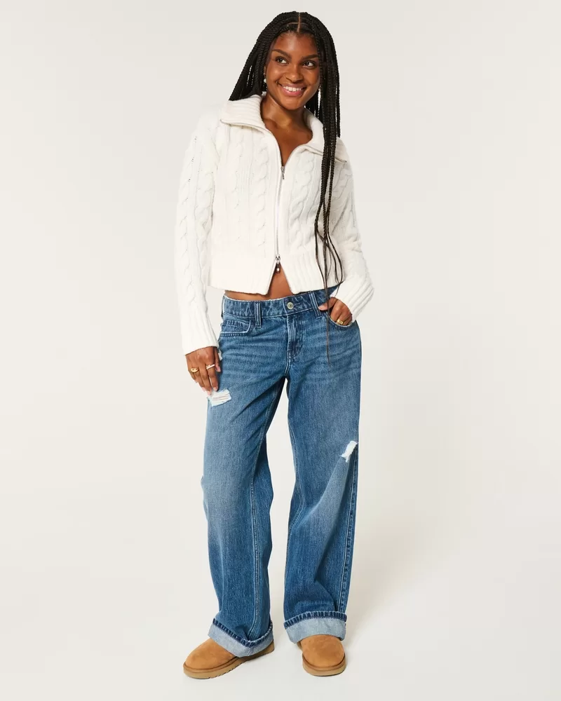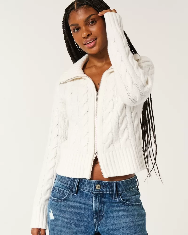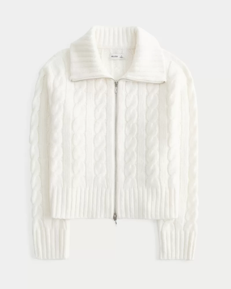 Hollister Comfy Cloud Zip-Up Cable-Knit Sweater