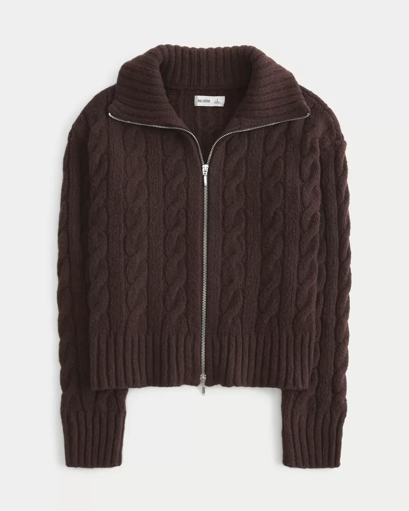 Hollister Comfy Cloud Zip-Up Cable-Knit Sweater