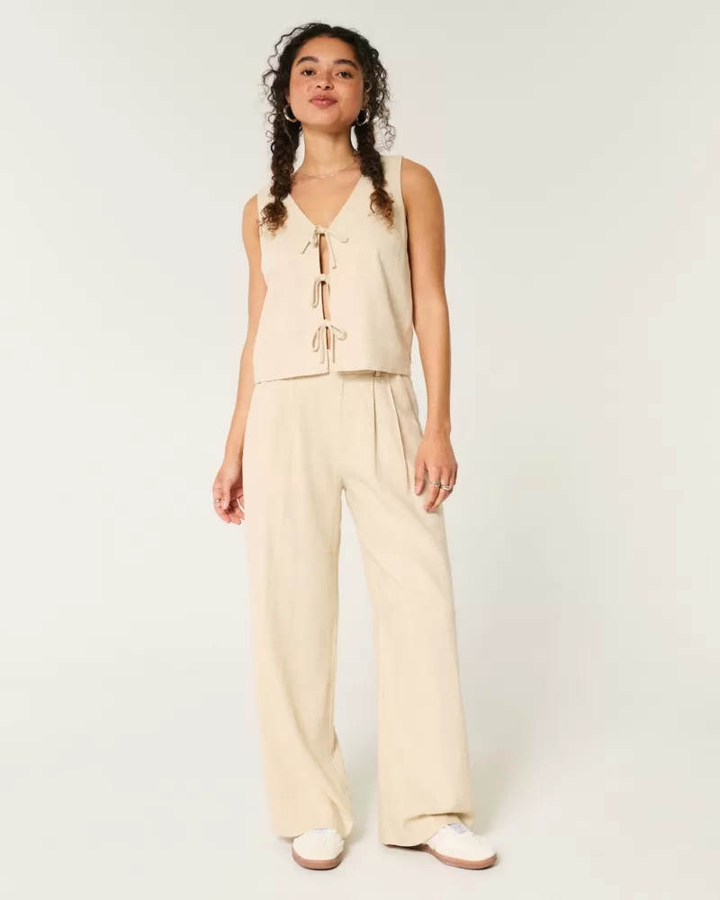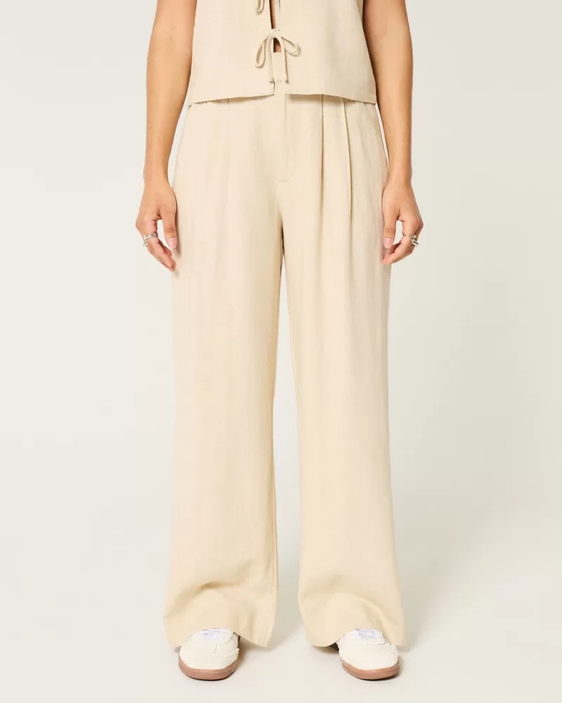 Hollister Livvy Ultra High-Rise Linen-Blend Wide-Leg Pants