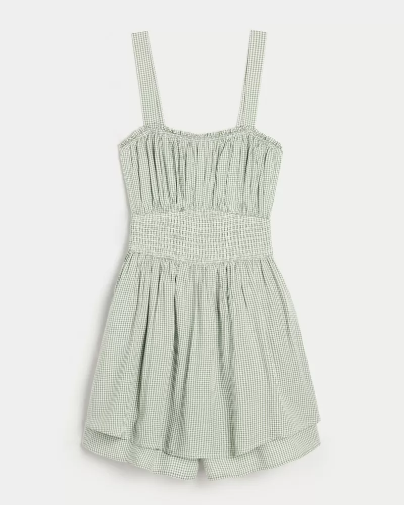 Your new fave romper features removable straps, a smocked waist and double-tiered skirt. Ruched detailing through the bust, pockets.