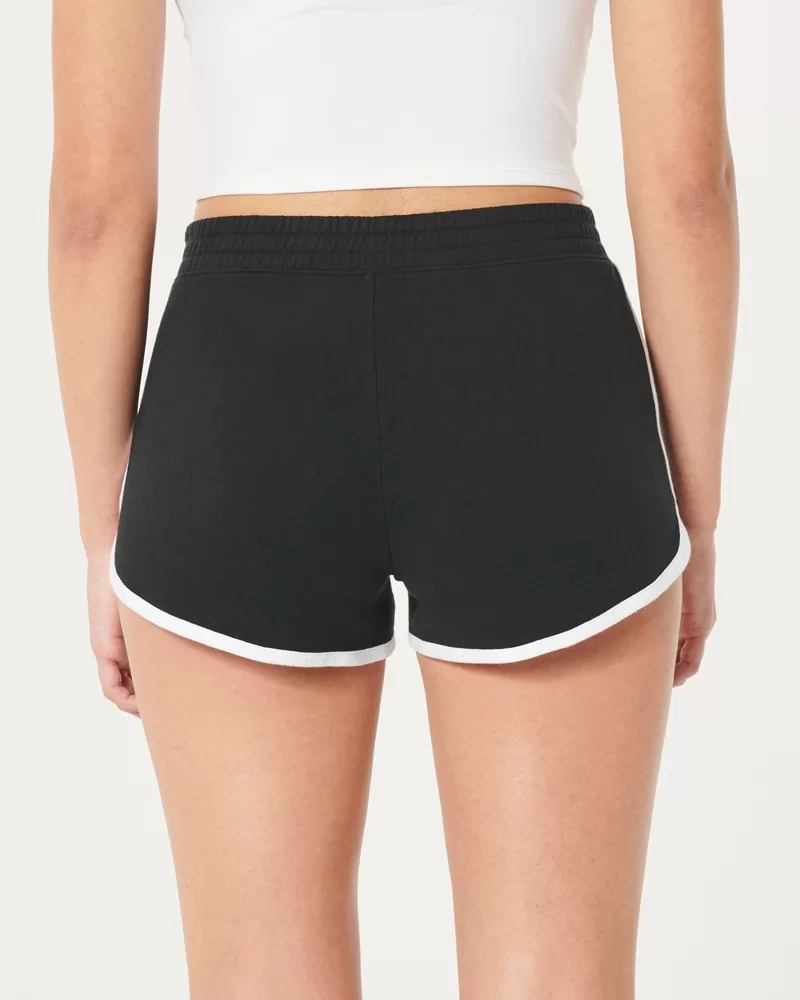 Super soft and sporty knit shorts with an embroidered logo detail at the left hem. Soft banded waist. Imported.