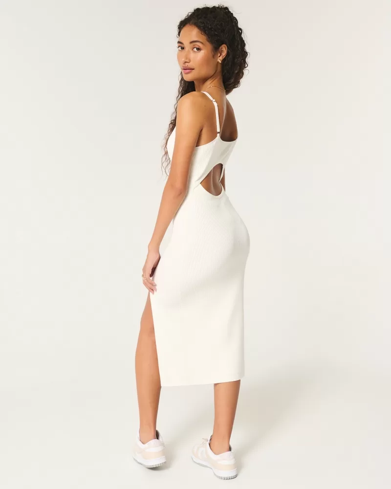 This super cute and ultra-soft midi-length dress features a split hem detail and open back detail.