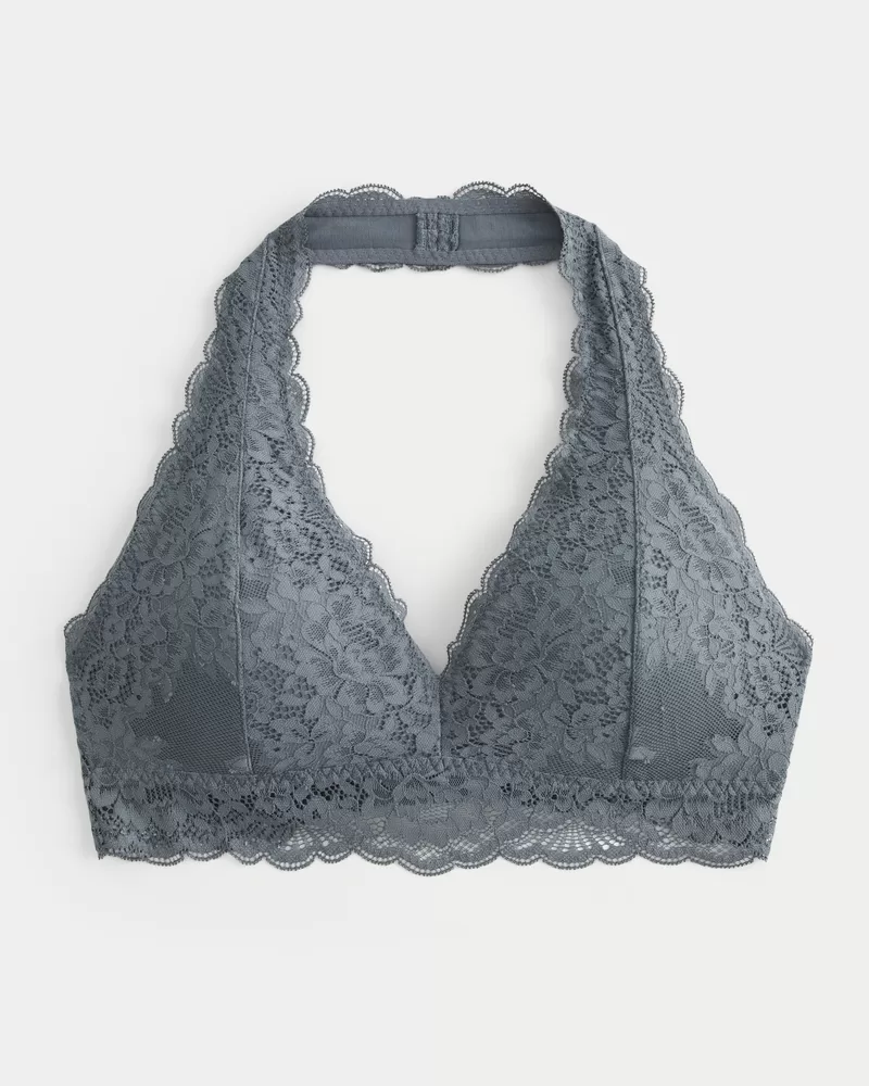 A pretty bralette in soft all-over lace, designed with scalloped trims and halter straps.