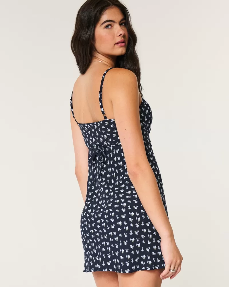 Made with soft crepe fabric, this cute layerable slip dress features skinny straps, a ruched bust and back tie details. Imported.