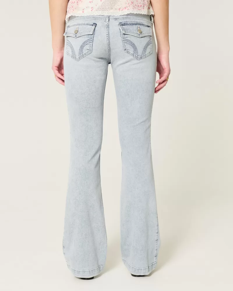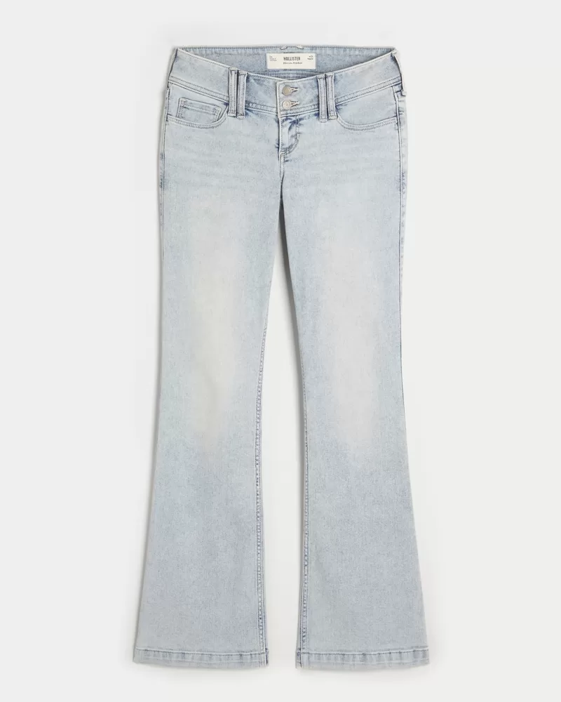 Comfortable denim jeans in a light wash, designed with a slim leg and boot hem. Ultra low-rise waist, fading, whiskering. Imported.