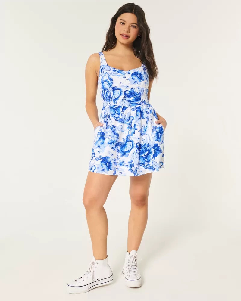 Undeniably pretty and super soft, this mini skort dress is made with a comfy linen blend and features hidden shorts, pockets and adjustable straps. Side smocking. Imported.