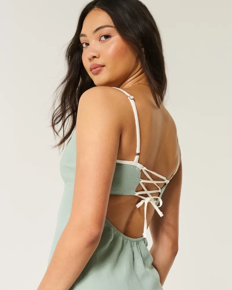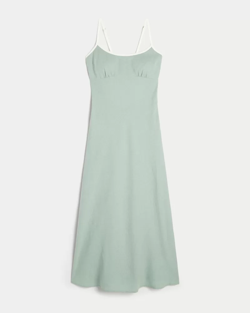 Linen-Blend Open-Back Slip Midi Dress,Linen-Blend Open-Back Slip Midi Dress