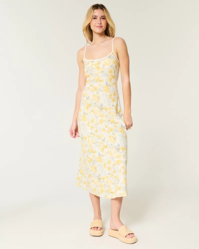 Linen-Blend Open Back Slip Midi Dress,Linen-Blend Open Back Slip Midi Dress