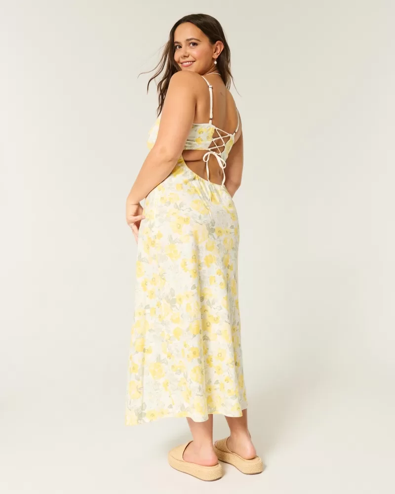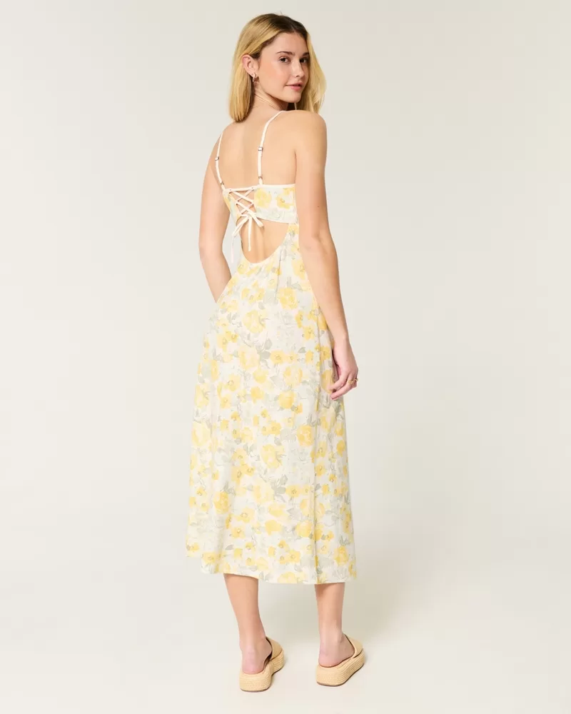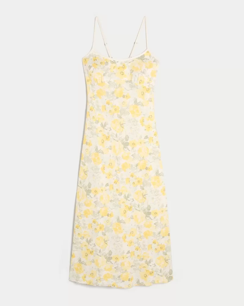 Linen-Blend Open Back Slip Midi Dress