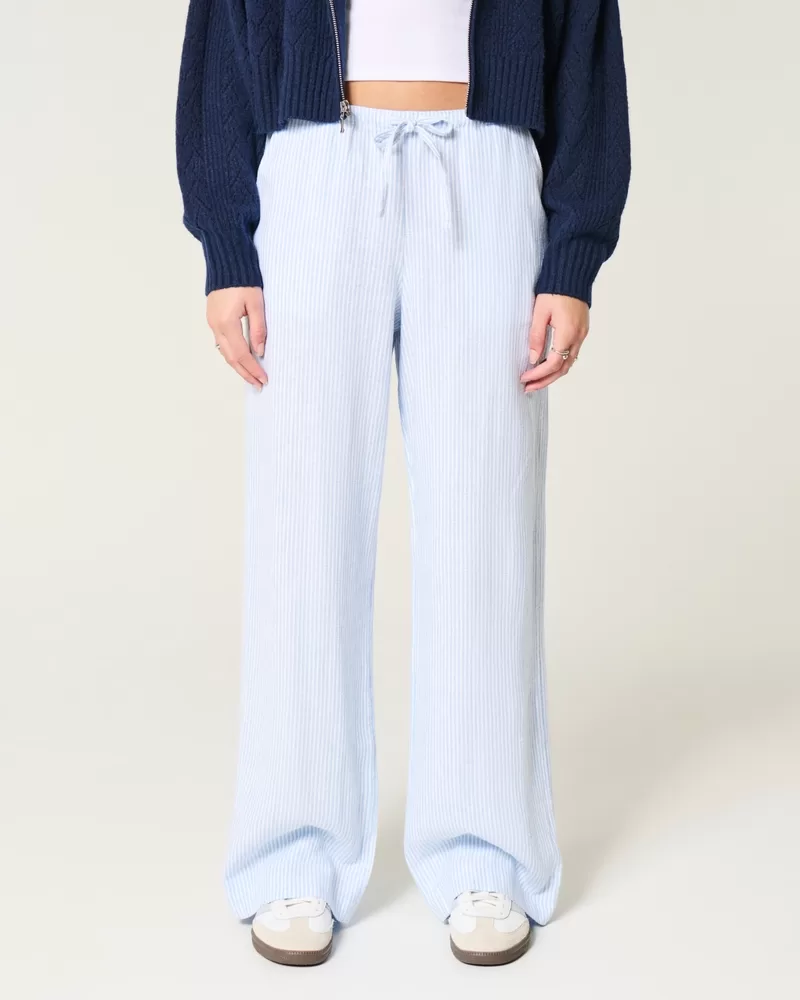 Linen-Blend Pull-On Baggy Pants