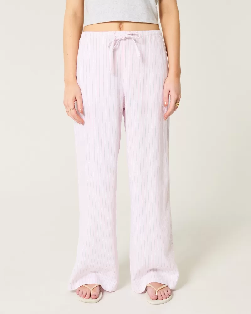 Cute and comfy pants in a soft linen blend, designed with a baggy leg and adjustable-rise pull-on drawstring waist. Pockets. Imported.