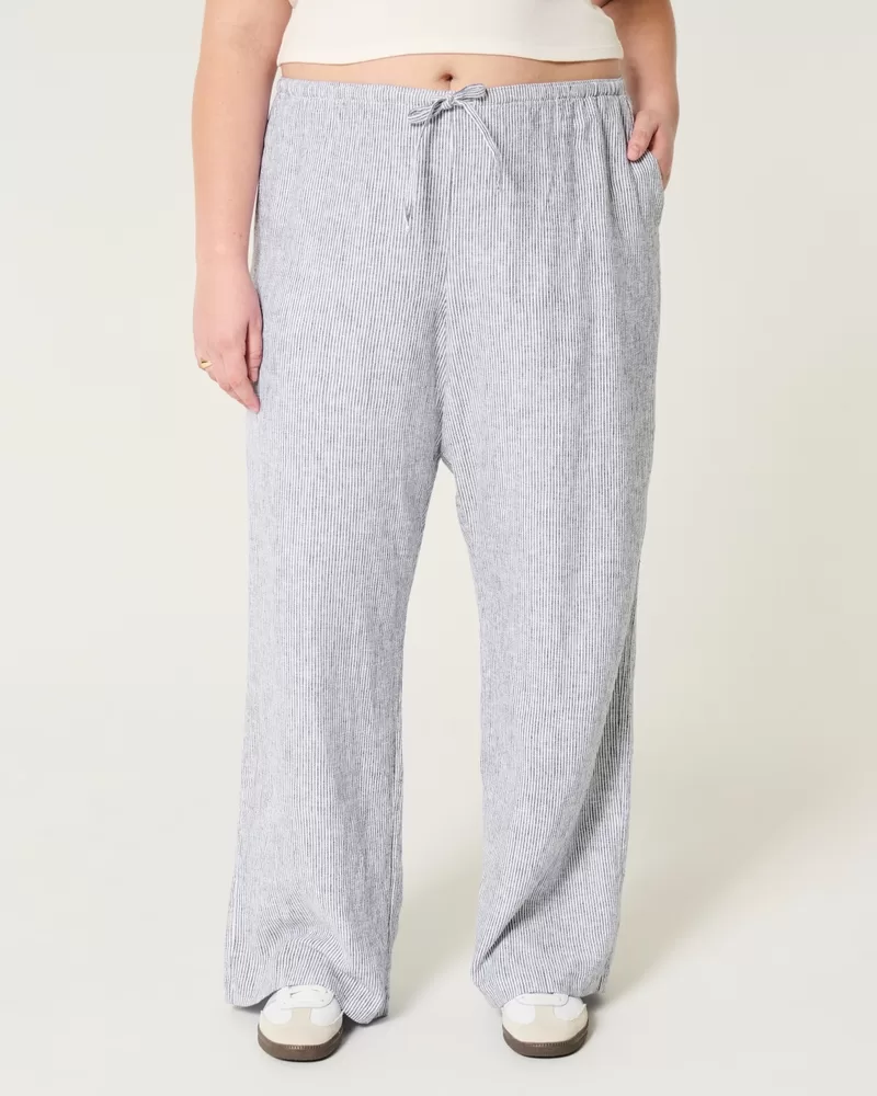 Soft and comfy pants in a linen blend, designed with a baggy leg and pull-on drawstring waist. Pockets.
