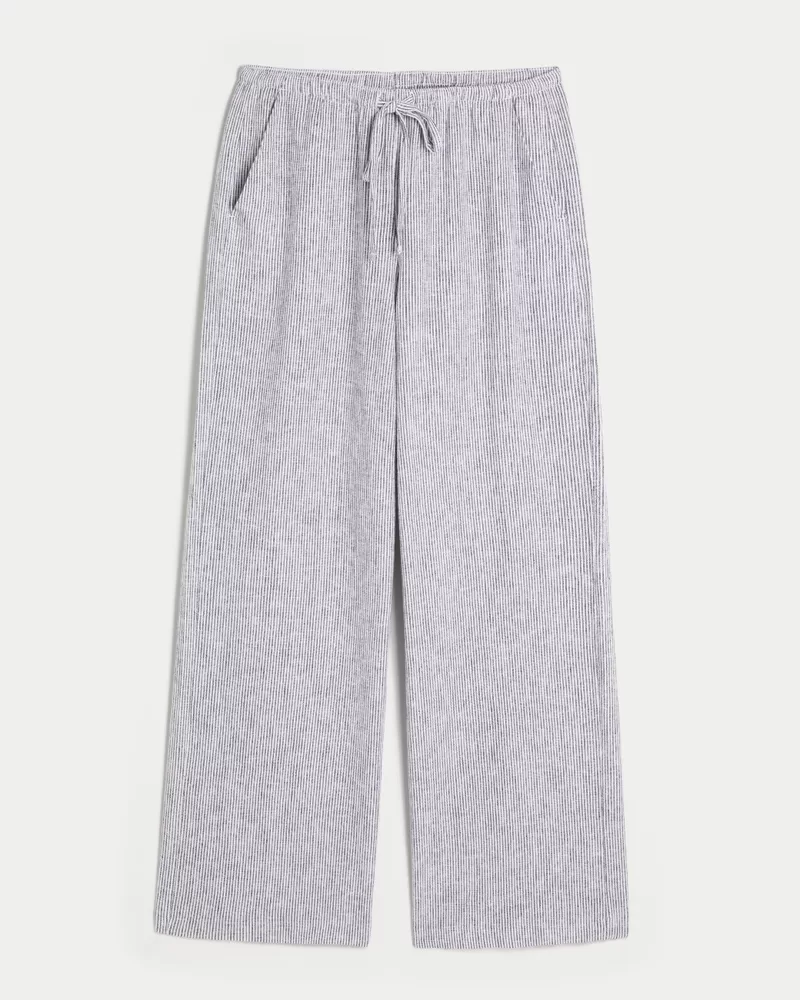 Soft and comfy pants in a linen blend, designed with a baggy leg and pull-on drawstring waist. Pockets. Imported.