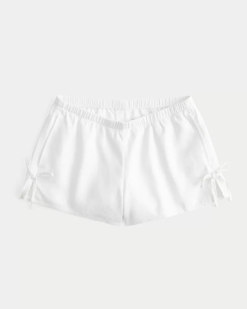 Linen-Blend Side Bow Soft Shorts