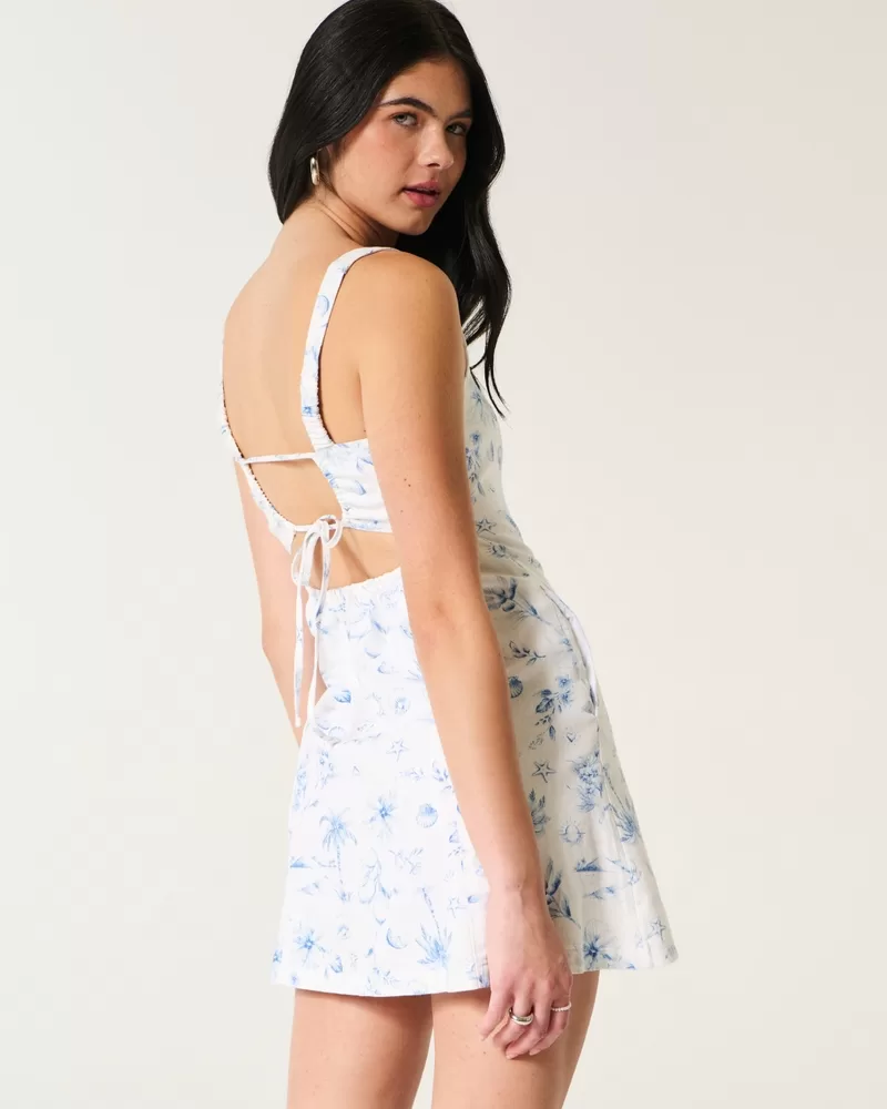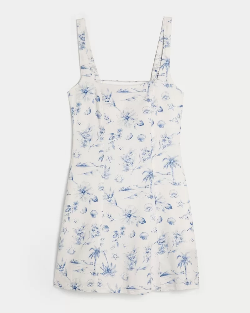 Linen-Blend Structured Mini Dress