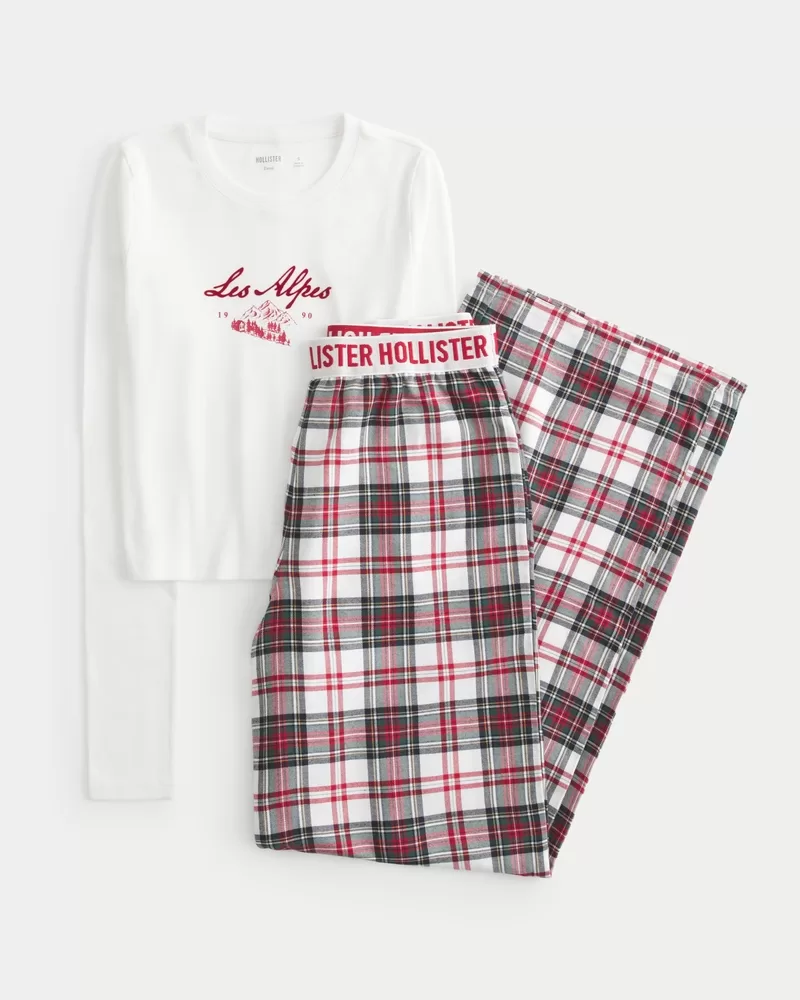 Long-Sleeve Graphic Tee & Flannel Pajama Pants Set