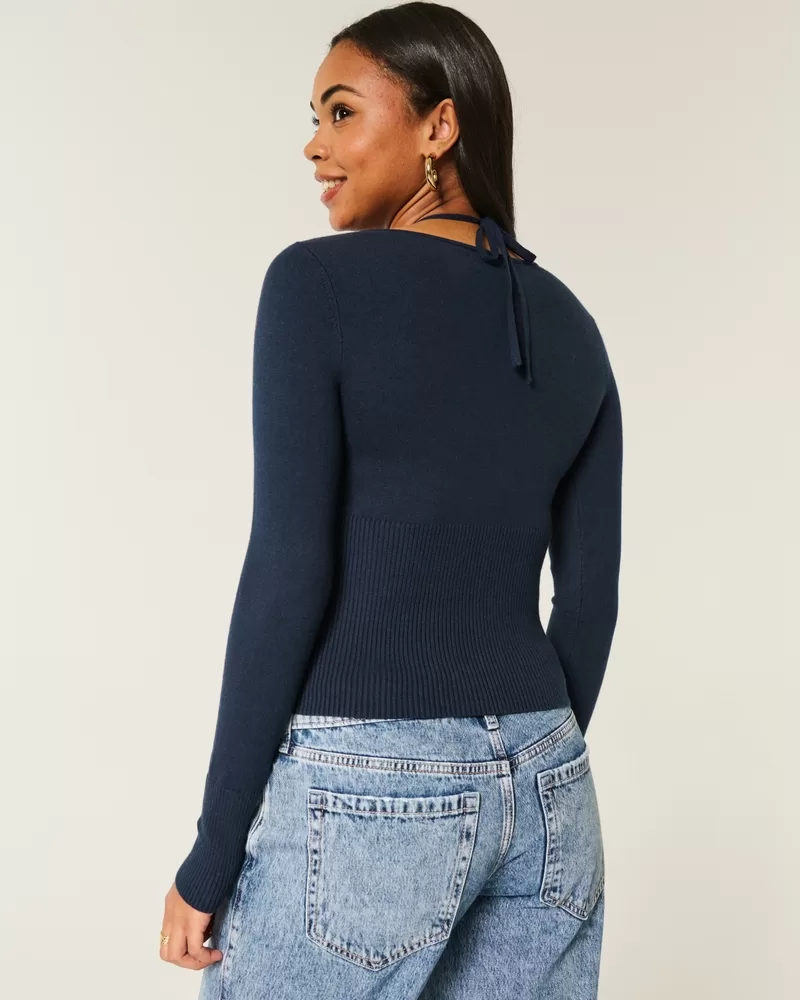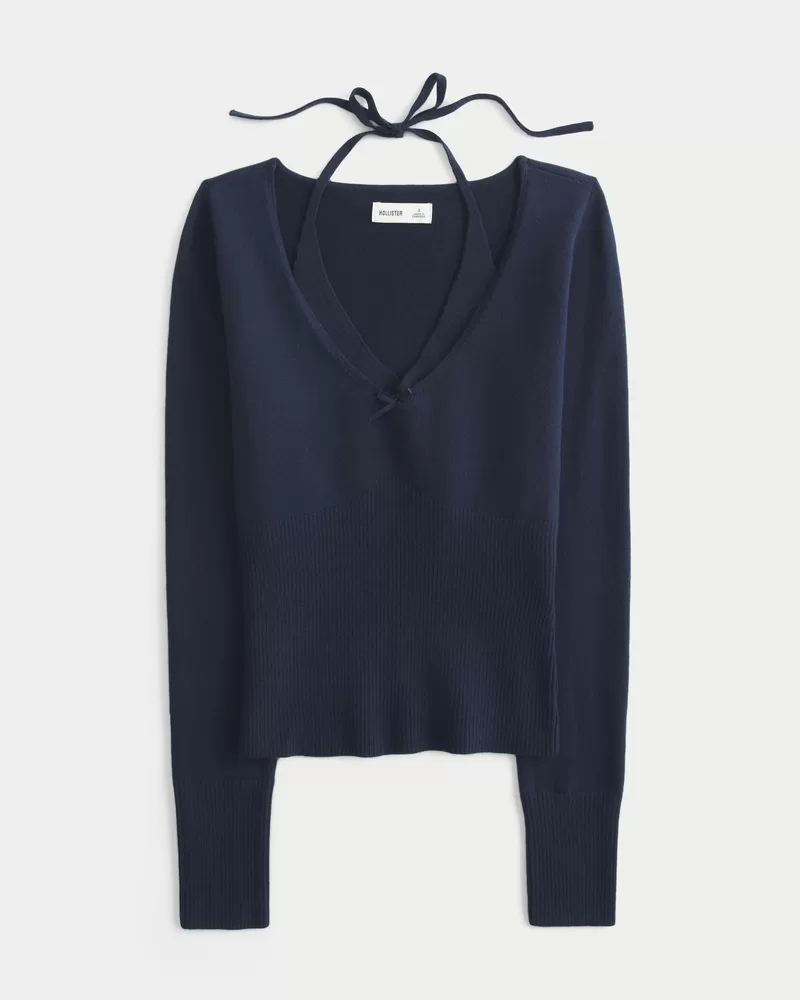 Long-Sleeve Halter Tie Sweater