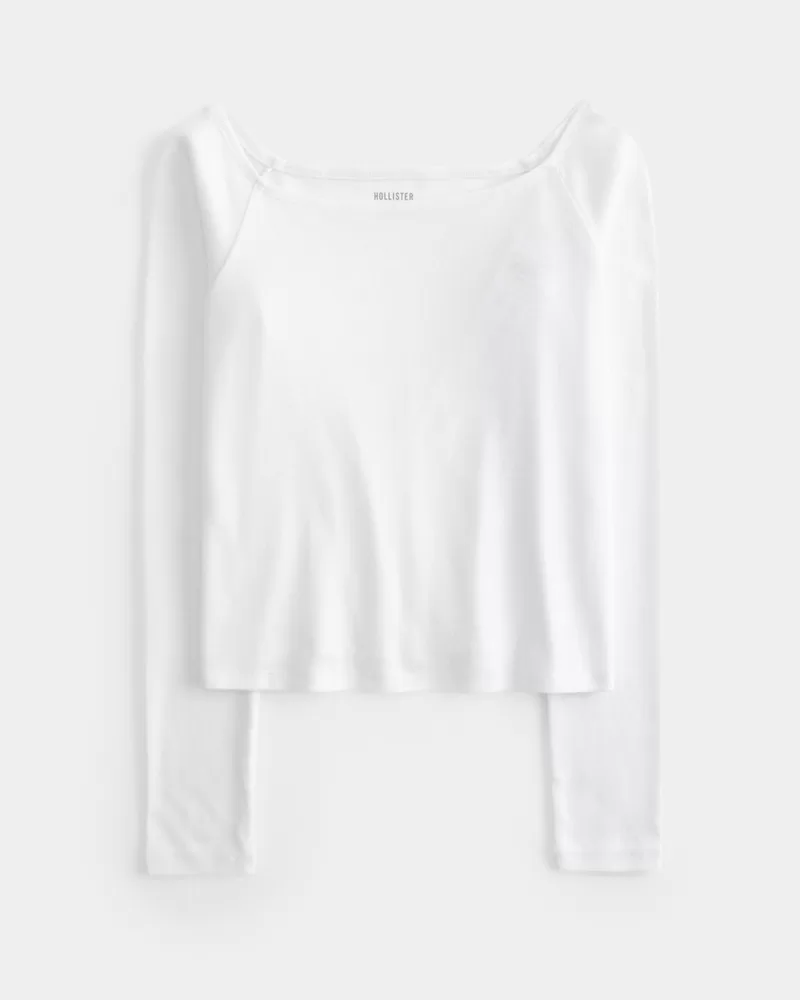 Super soft and ultra-comfortable, this long-sleeve top features an off-the-shoulder neckline and body-skimming silhouette. Imported.