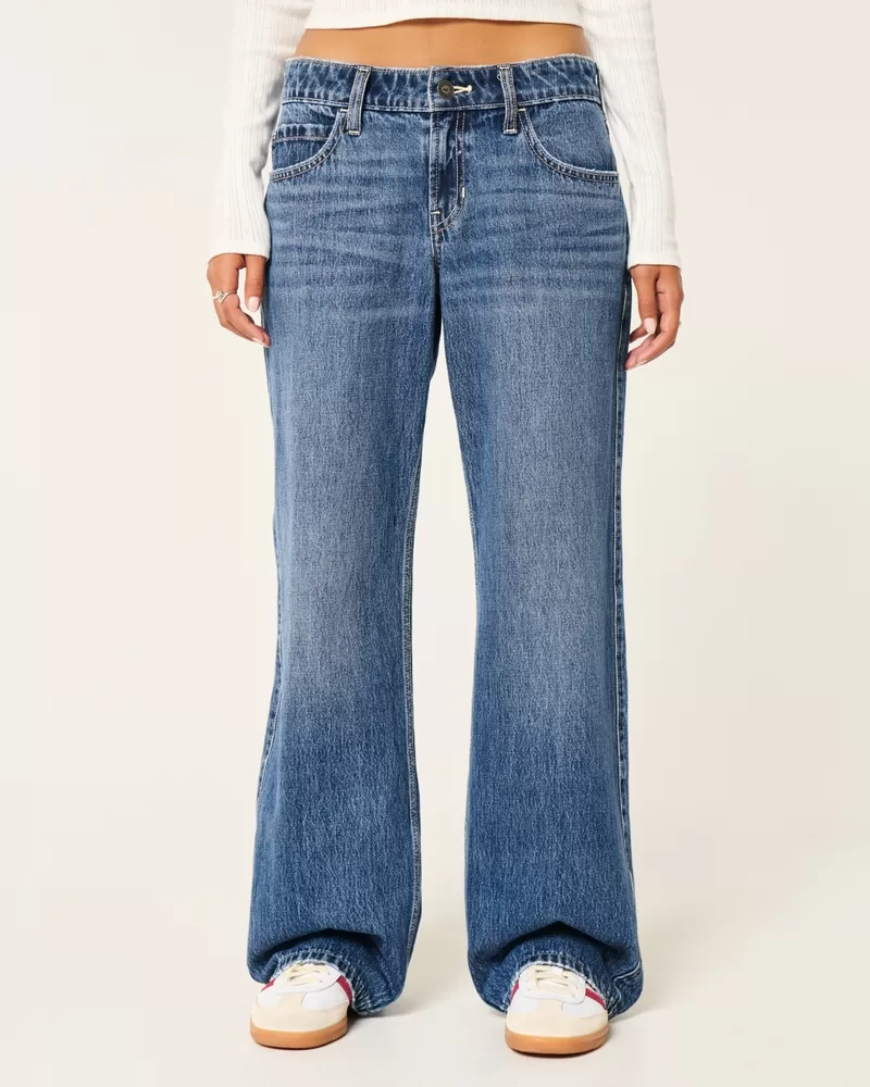Low-Rise Dark Wash Baggy Jeans