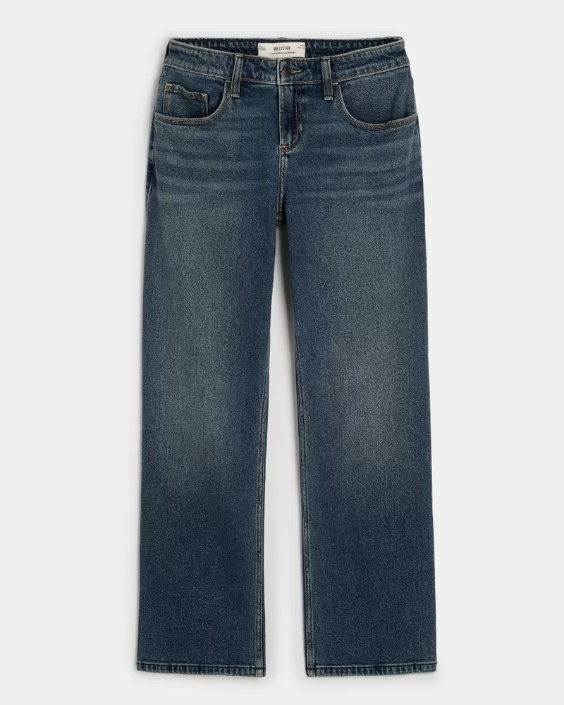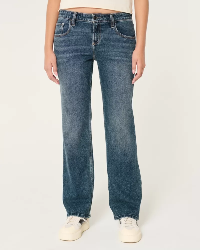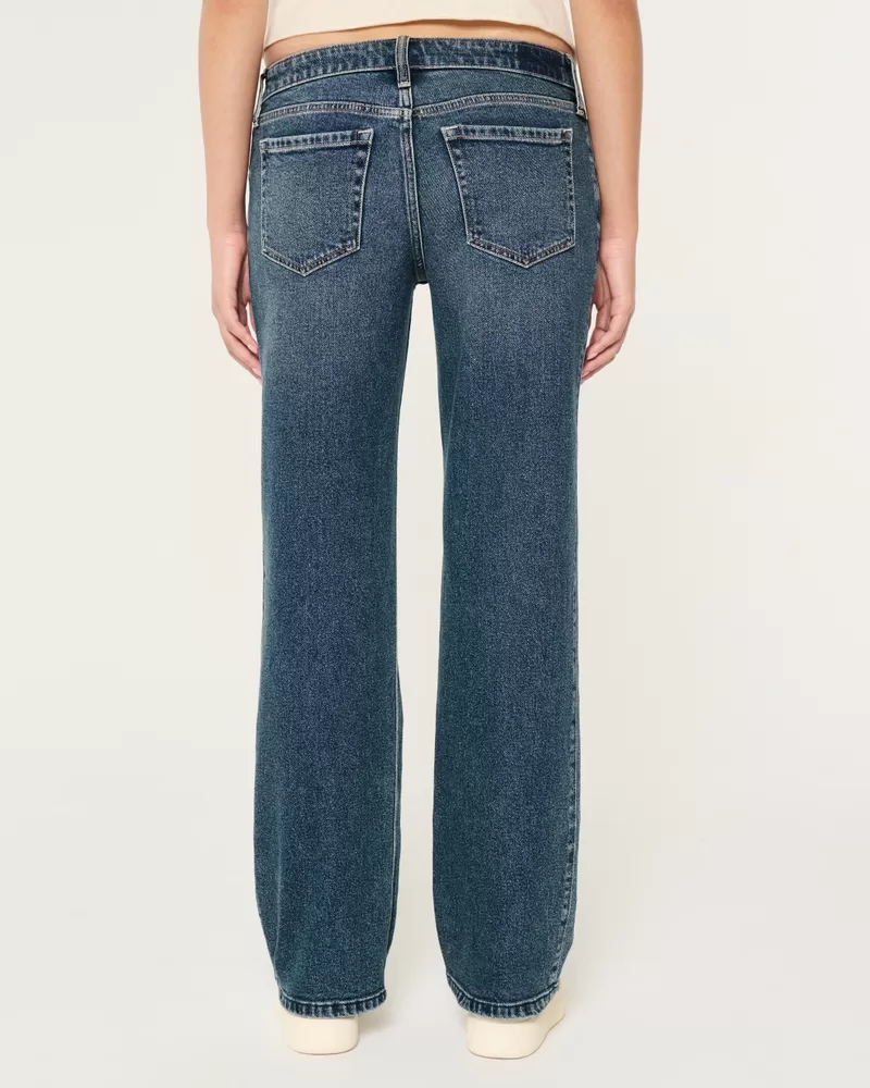 Low-Rise Dark Wash Relaxed Straight Jeans