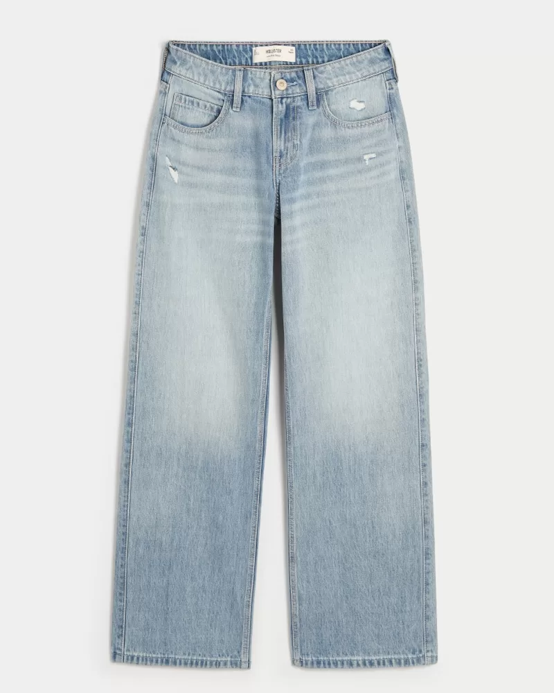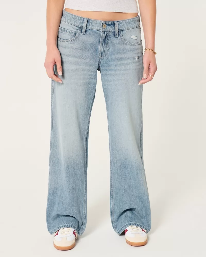 Low-Rise Distressed Medium Wash Baggy Jeans