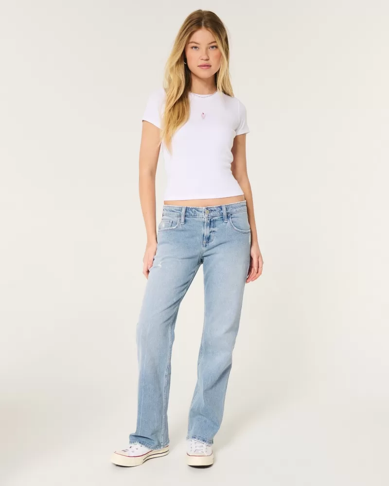 Low-Rise Distressed Medium Wash Relaxed Straight Jeans
