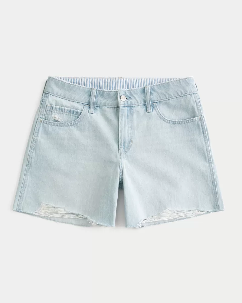 Low-Rise Light Wash Baggy Denim Shorts 5″