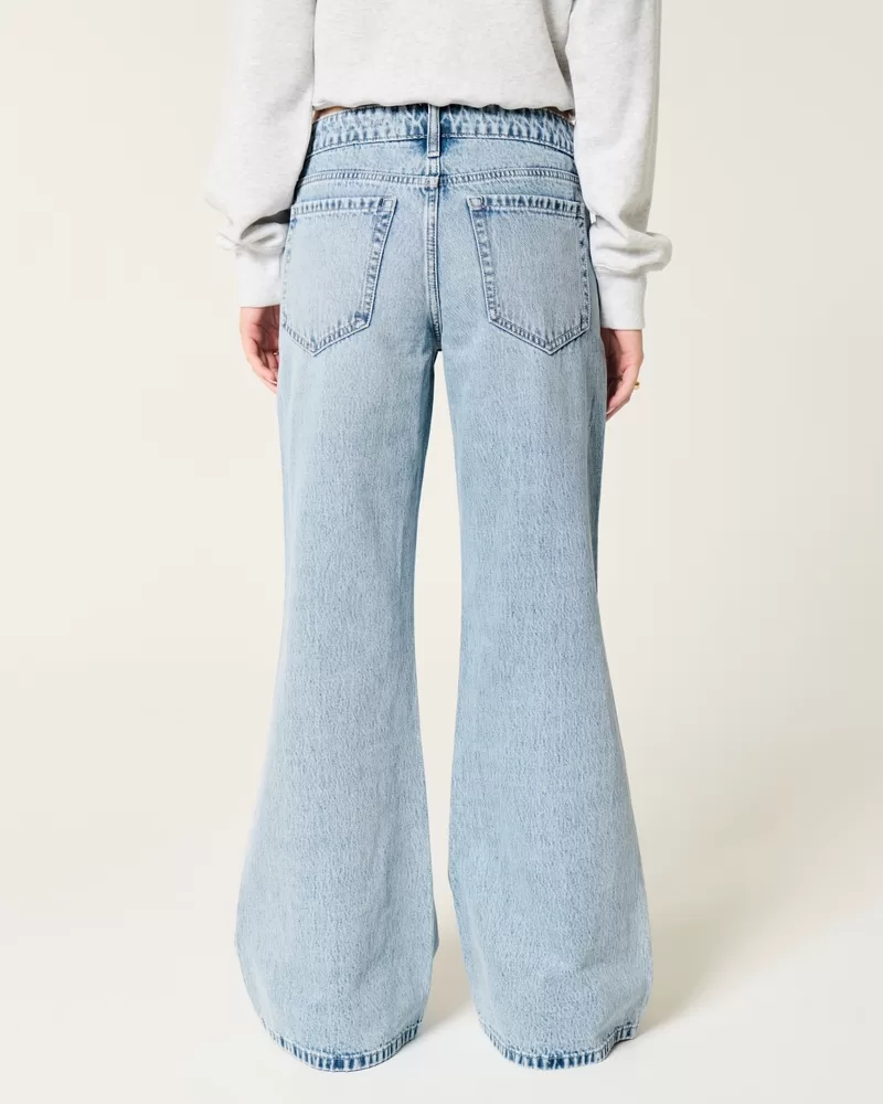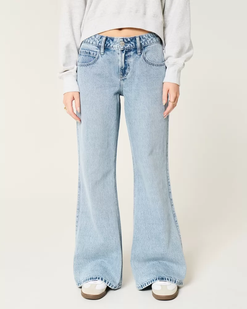 Low-Rise Light Wash Baggy Flare Jeans
