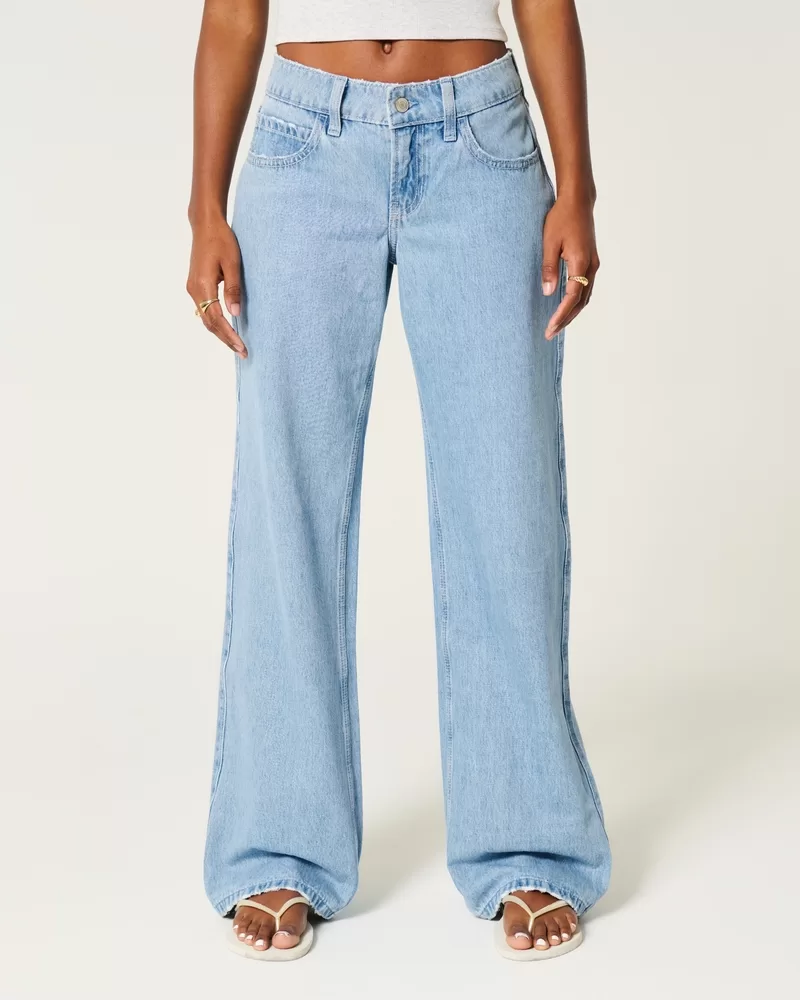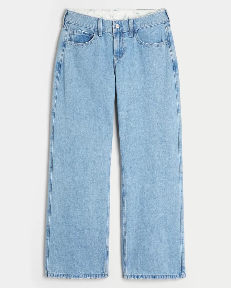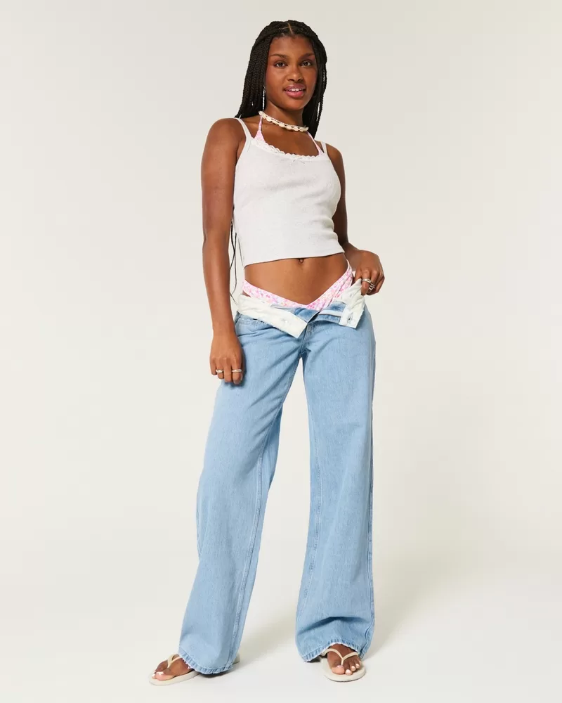 Low-Rise Light Wash Foldover Waist Baggy Jeans