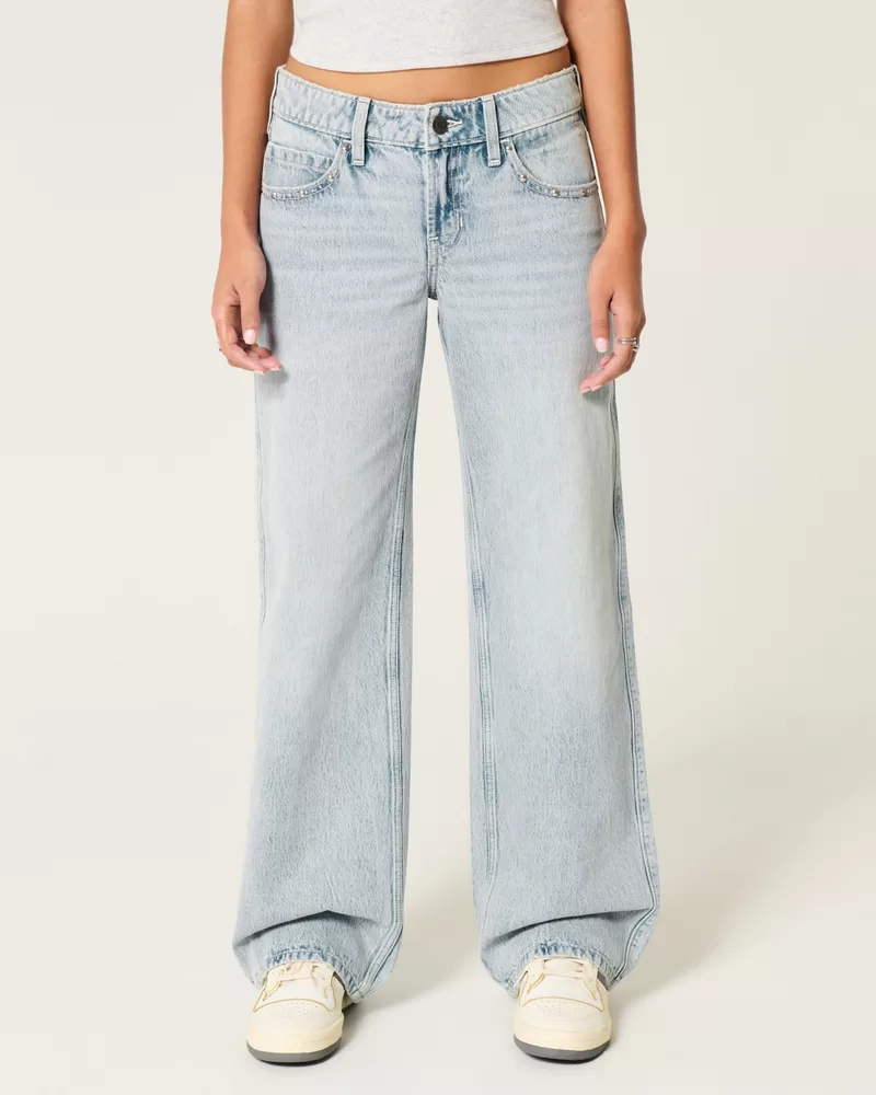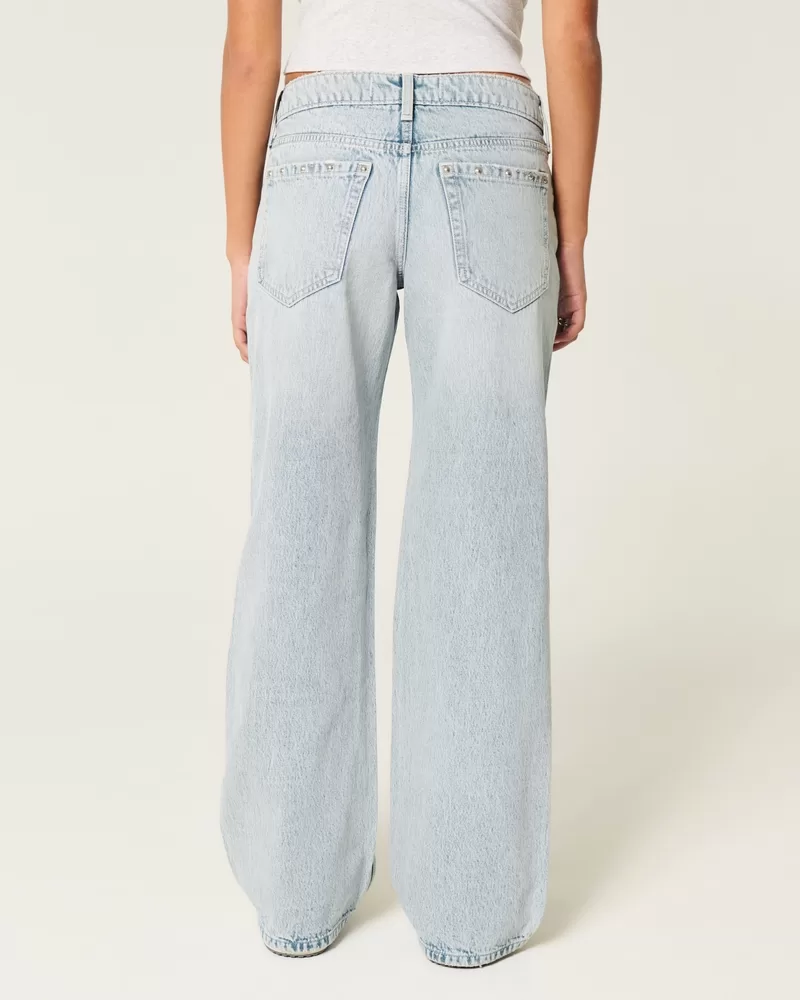 Low-Rise Light Wash Studded Baggy Jeans