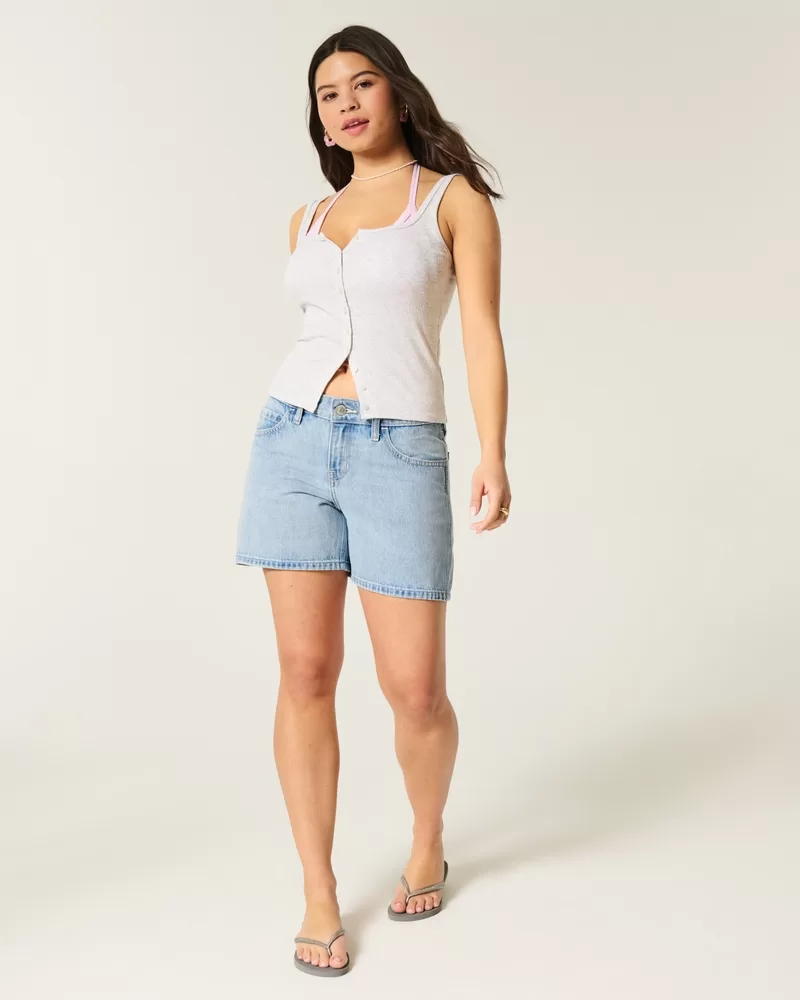Low-Rise Medium Wash Baggy Denim Shorts 5″