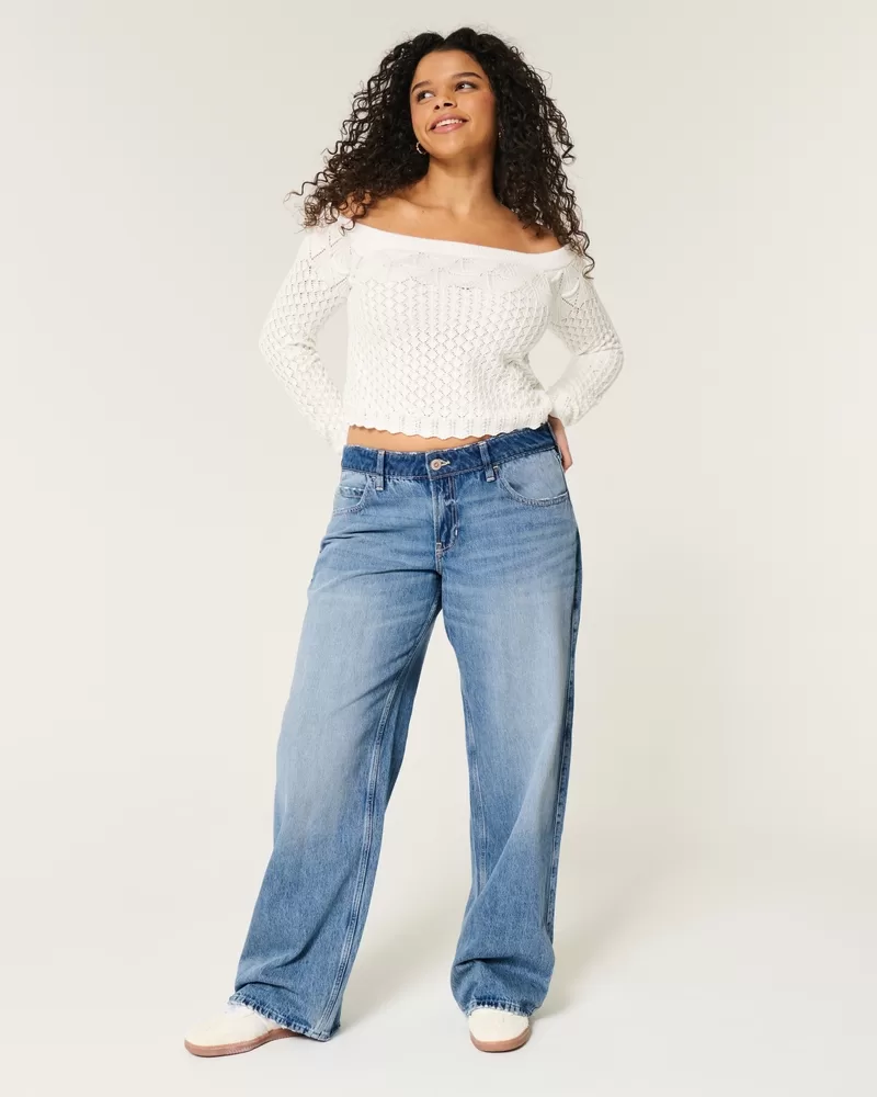 Low-Rise Medium Wash Baggy Jeans,Low-Rise Medium Wash Baggy Jeans