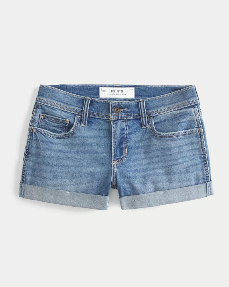 Low-Rise Medium Wash Denim Shortie Shorts