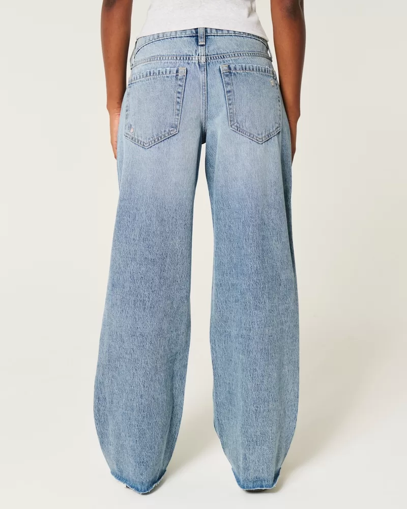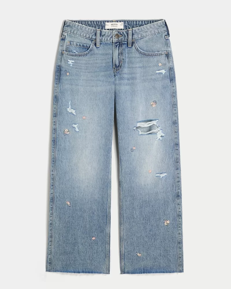 Low-Rise Medium Wash Floral Ripped Baggy Jeans