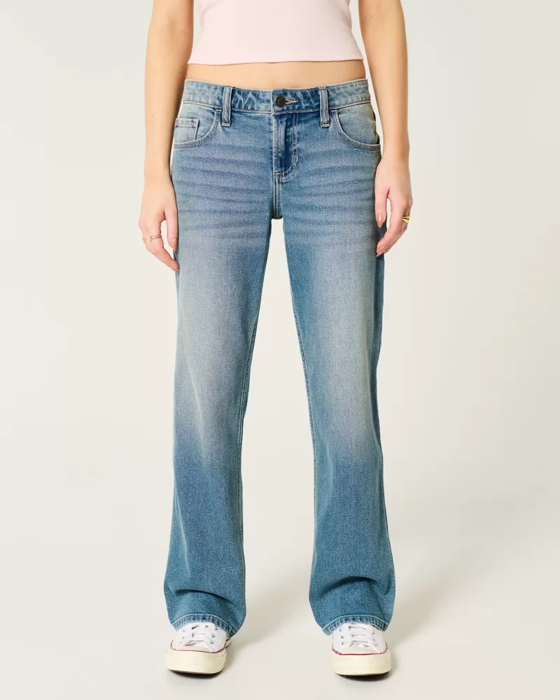 Low-Rise Medium Wash Relaxed Straight Jeans
