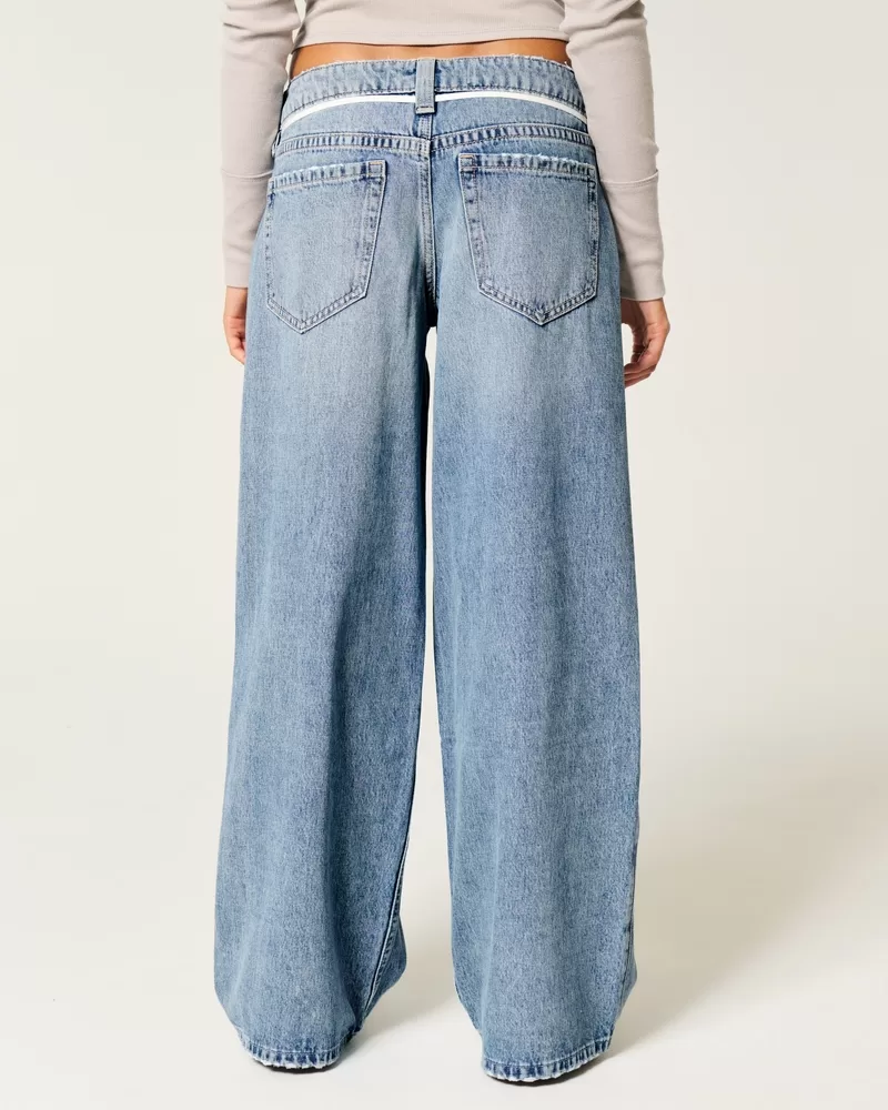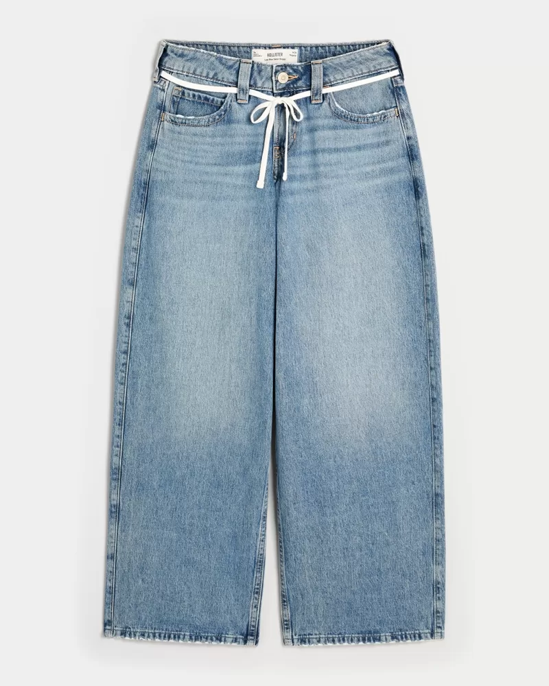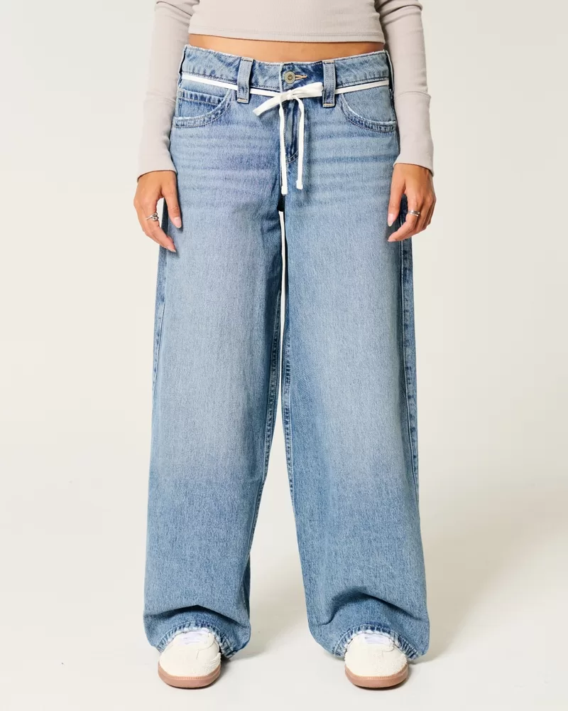 Low-Rise Medium Wash Shoelace Super Baggy Jeans