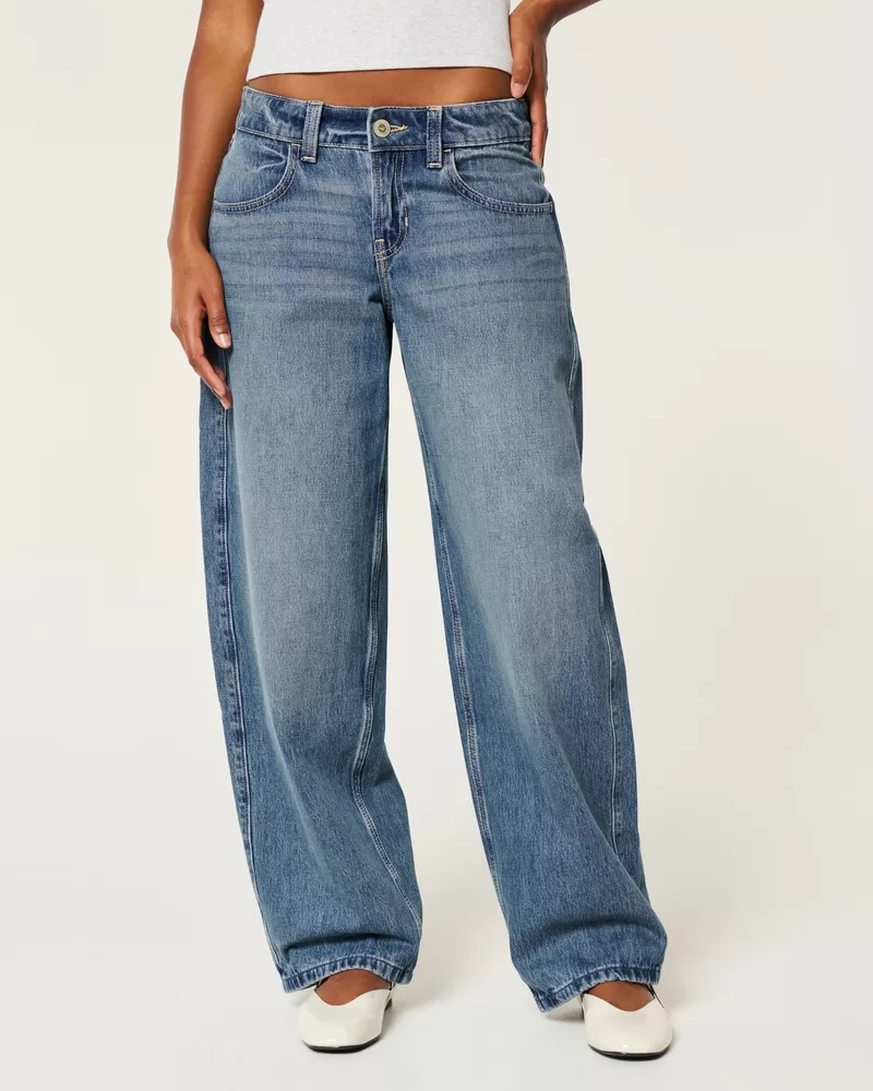 Low-Rise Medium Wash Tapered Baggy Jeans