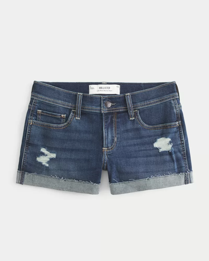 Low-Rise Ripped Dark Wash Denim Shortie Shorts