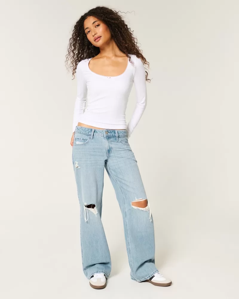 Low-Rise Ripped Light Wash Baggy Jeans,Low-Rise Ripped Light Wash Baggy Jeans