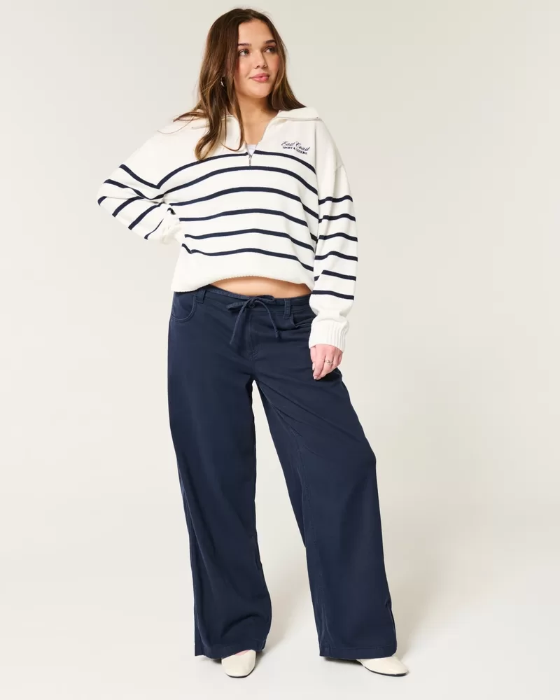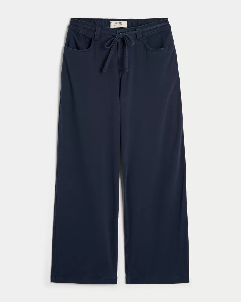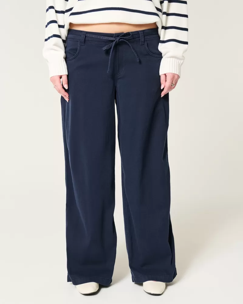 Soft twill pants designed with a flattering low-rise drawstring waist. Zipper closure, pockets, super baggy leg. Imported.