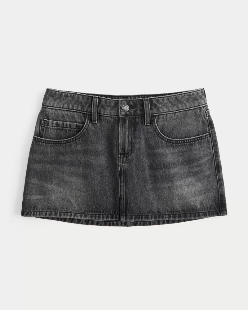Low-Rise Washed Black Denim Mini Skort,Low-Rise Washed Black Denim Mini Skort