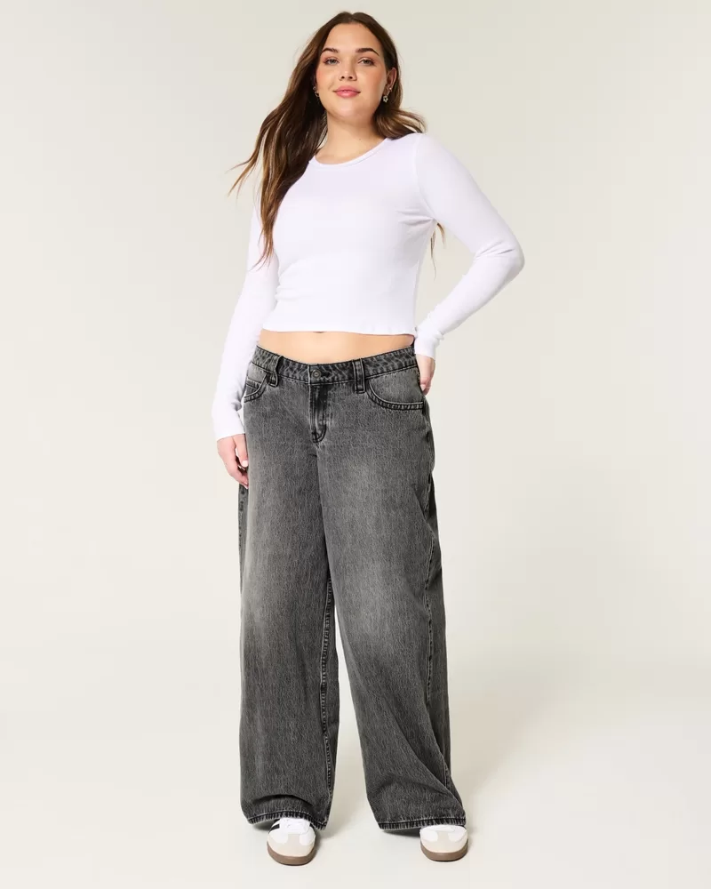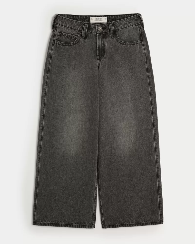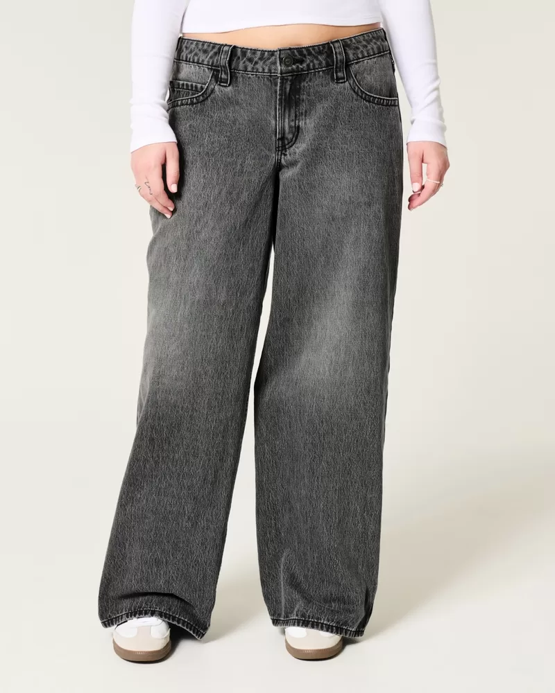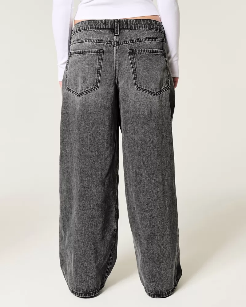 Ultra-comfortable jeans in washed black, designed with a low-rise waist and super baggy leg. Fading. Imported.