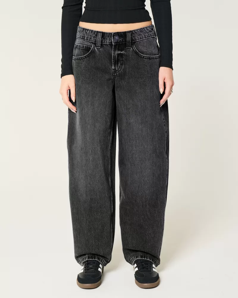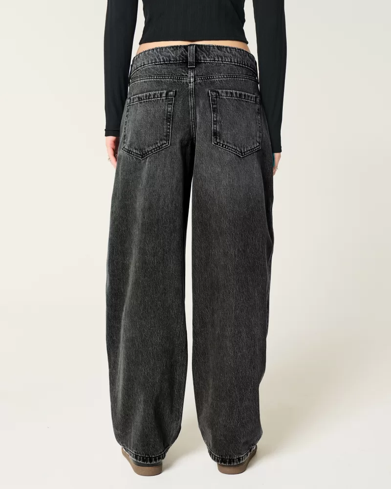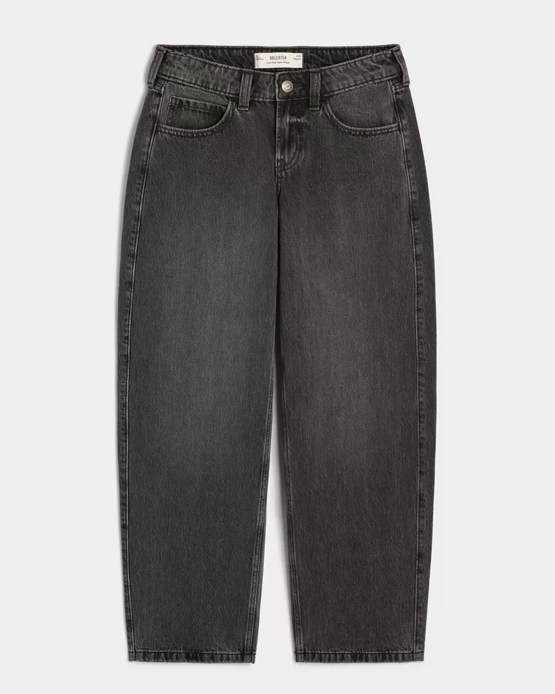 Low-Rise Washed Black Tapered Baggy Jeans