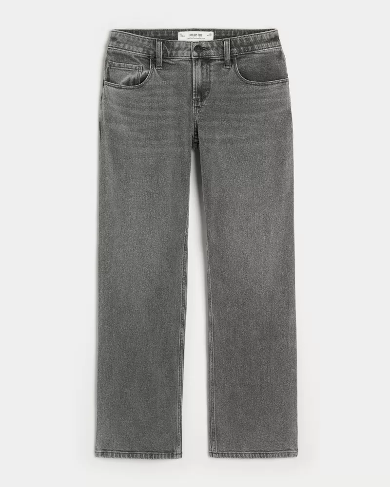 Low-Rise Washed Gray Relaxed Straight Jeans