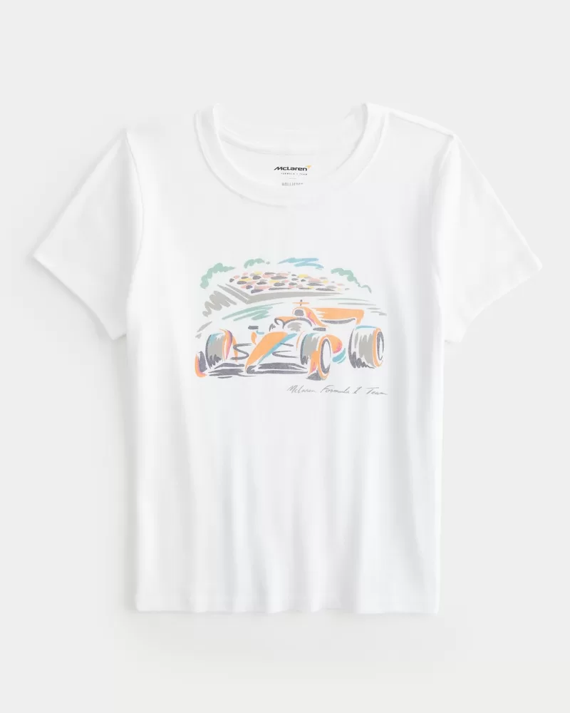 This super soft baby tee is designed with a slightly shrunken silhouette and features official licensed McLaren Formula 1 Team print graphics. Crew neckline, short sleeves. Slim Fit. Imported.