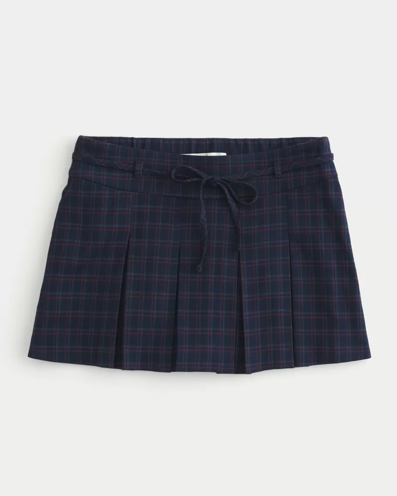 This cute mini skort is designed with a mid-rise waist with tie and classic pleats. Hidden shorts, pockets. Imported.