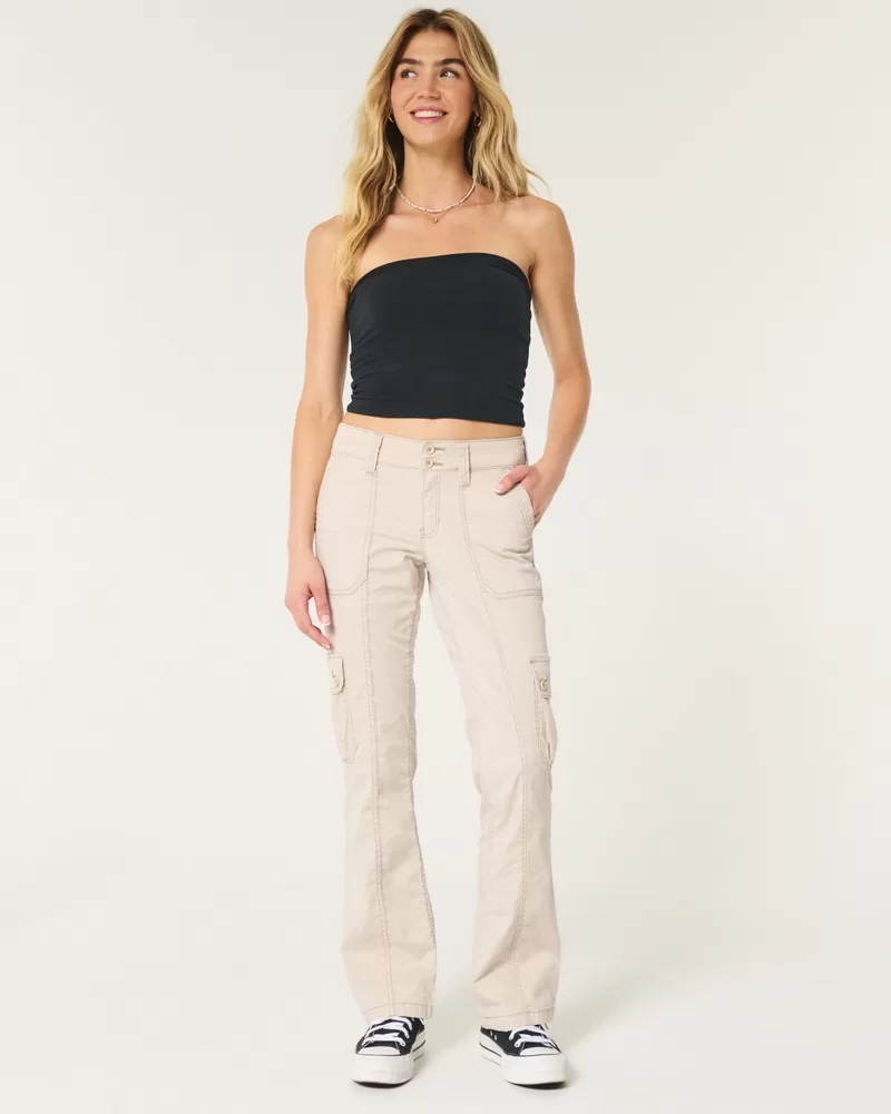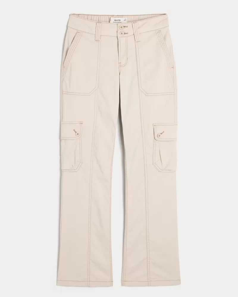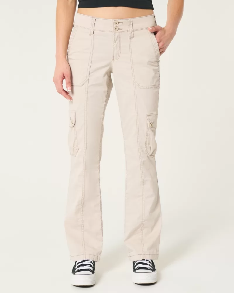 Classic twill pants designed with a relaxed leg and boot hem. Side cargo pockets, mid-rise waist. Imported.