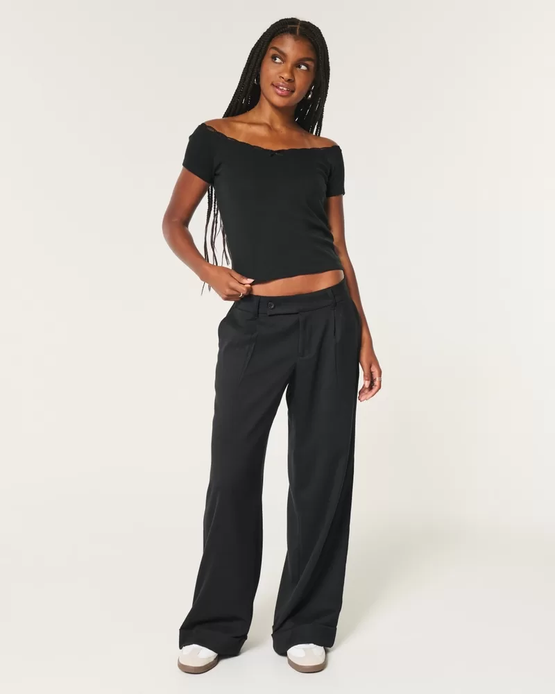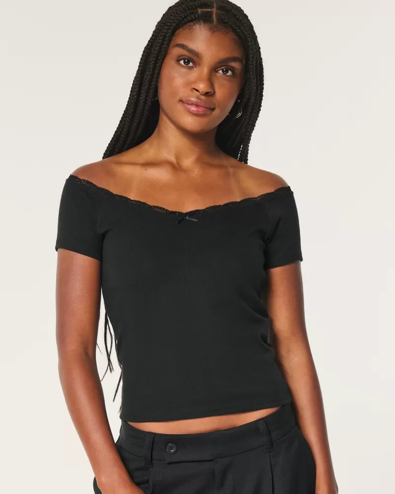 Off-the-Shoulder Lace Trim Top