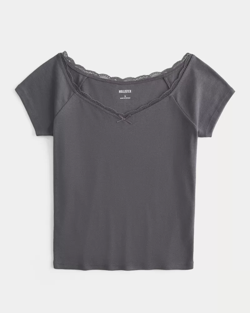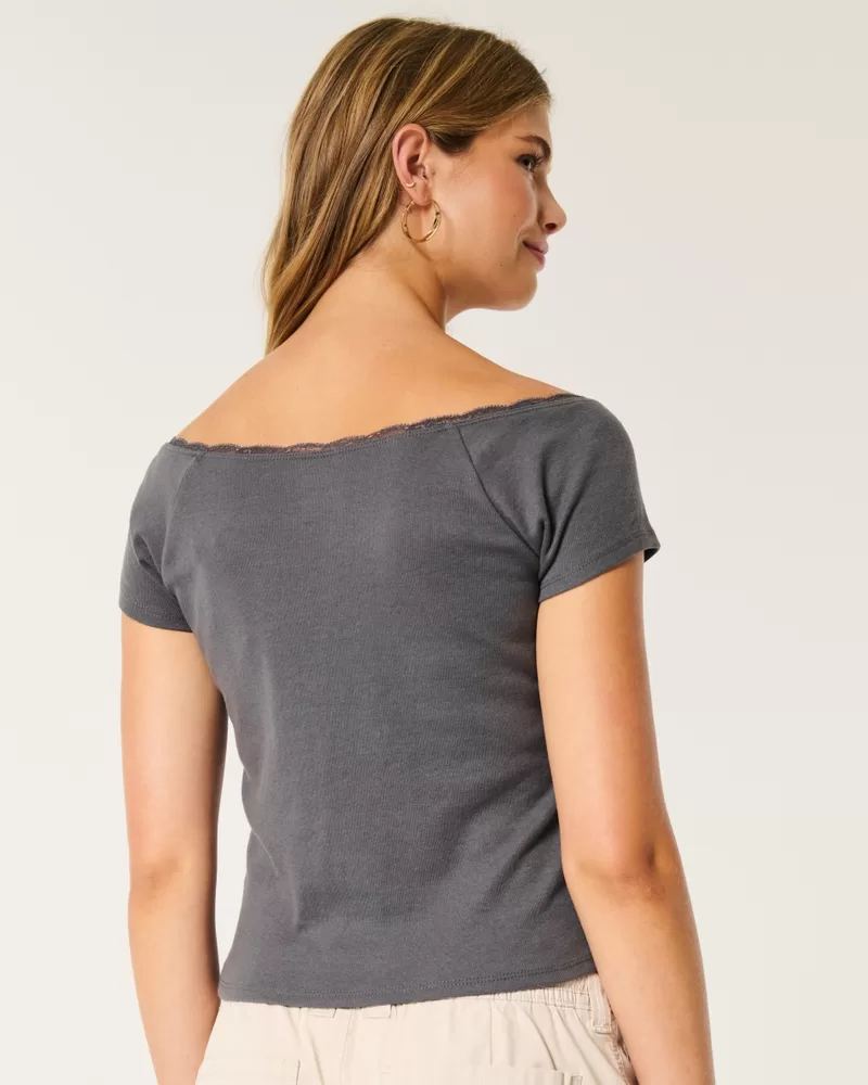 Off-the-Shoulder Lace Trim Top