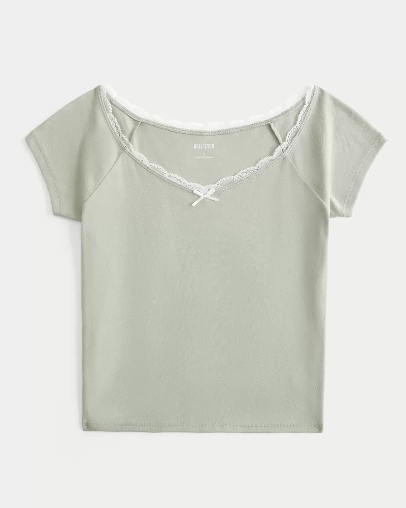 Off-the-Shoulder Lace Trim Top
